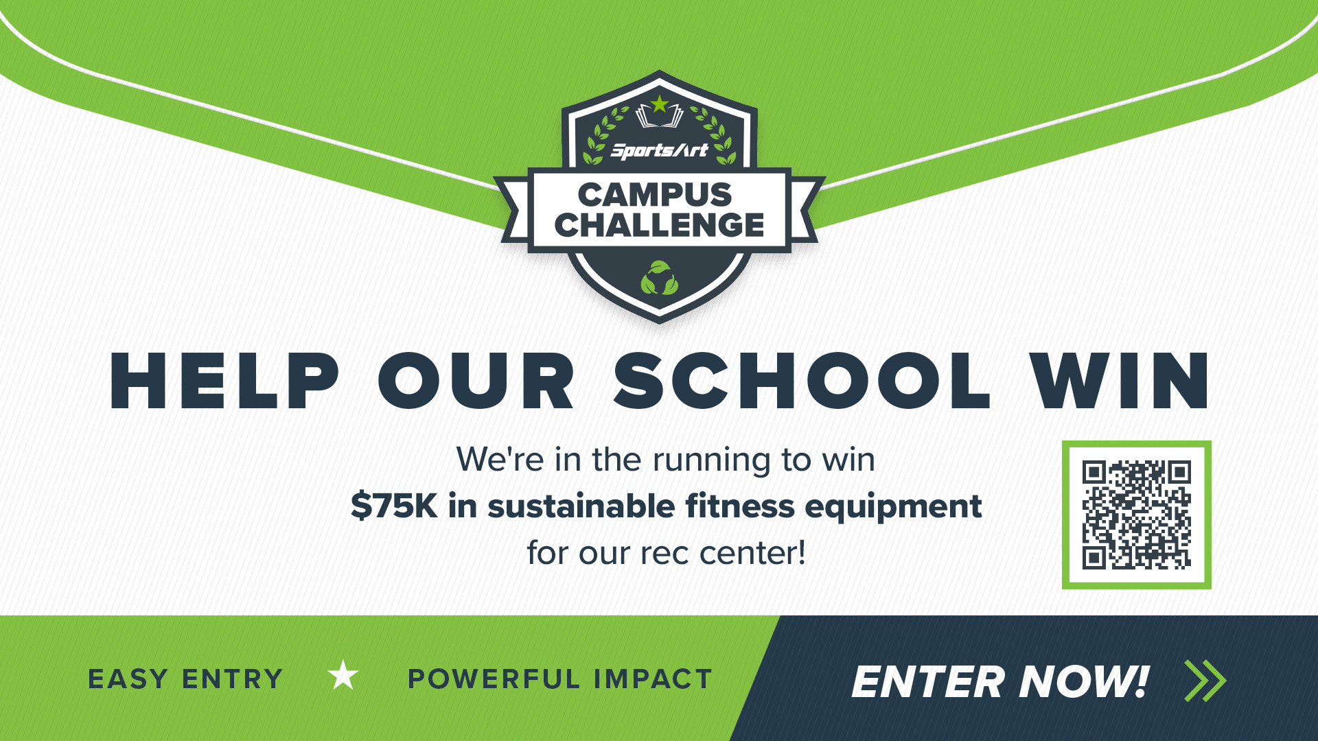 The more students & campus rec admin who enter, the greater your chance of winning ECO-POWR™ sustainable cardio equipment for your rec center.