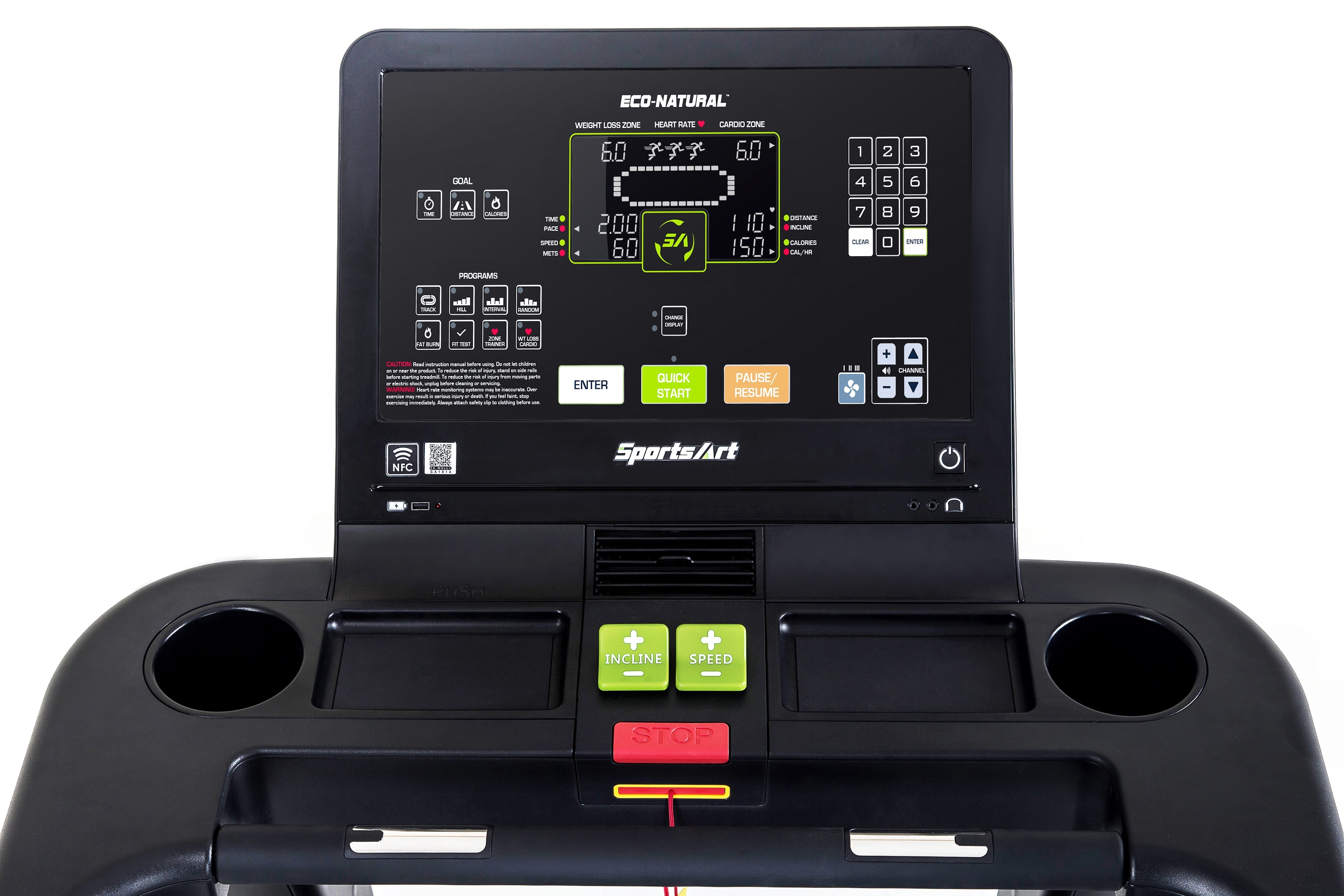 - Console toggles for quick speed and incline adjustment